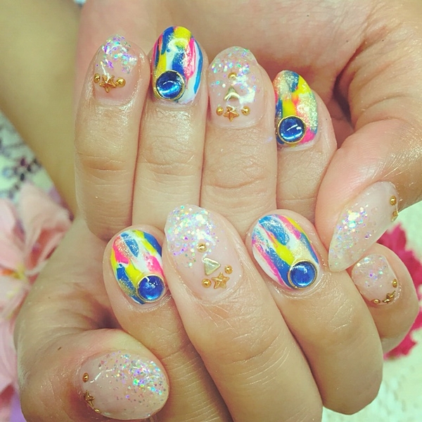 夏の強い日差しを活かす!キラッと眩しいラメネイルでキュートな指先を