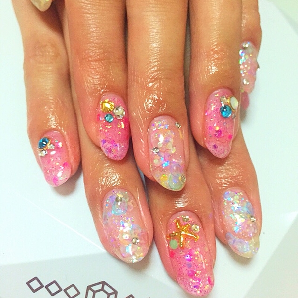 眩しいし、暑いし、良いことない夏の強い日差し。そんな日差しの下でも可愛くいられるのは、ラメネイル♡日差しが当たれば更にキラッと輝くキュートなラメネイルは、シンプルになりがちな夏STYLEにも華やかさを与えてくれます◎夏ネイルは、キラキラ~なラメネイルで決まりです♭