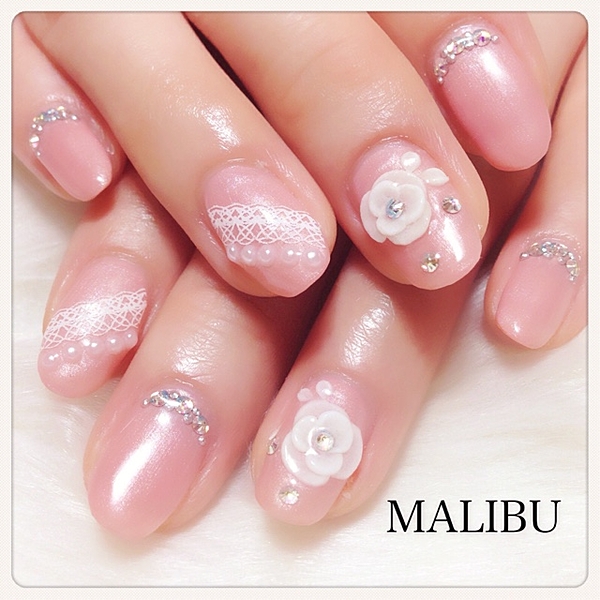 ブライダルネイルです♡ピンク、ホワイトのラメ、お花と可愛い花嫁様のネイルにぴったりのデザインになりました(*^_^*)おめでとうございます♡ http://t.co/UejaT241dz http://t.co/kN6fe7XXlD