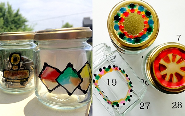 空き瓶の透け感を活かしたステンドグラスのようなシールを手軽に描けるツール、「GLASS PAINT」は、100円均一ショップでも手に入るアイテムを活用。