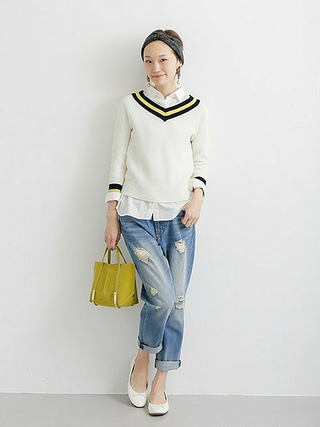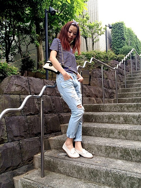 カジュアル代表、ダメージデニムを女っぽく着こなすには足元をチェンジ