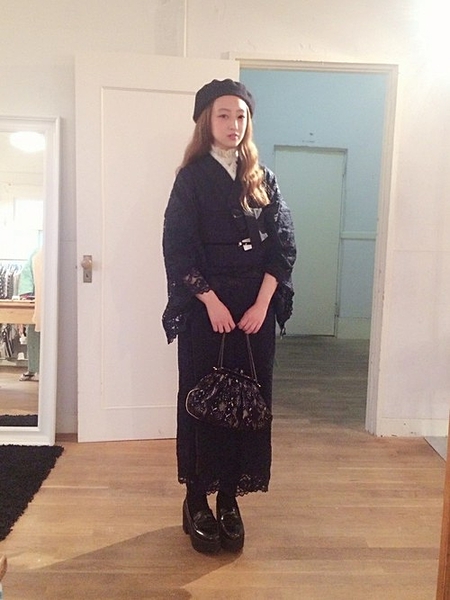 黒みがかったレースの着物に