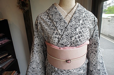 レースの着物は和柄の帯との