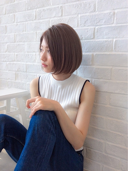 毛先をキレイに整えたショートカットのストレートヘアは