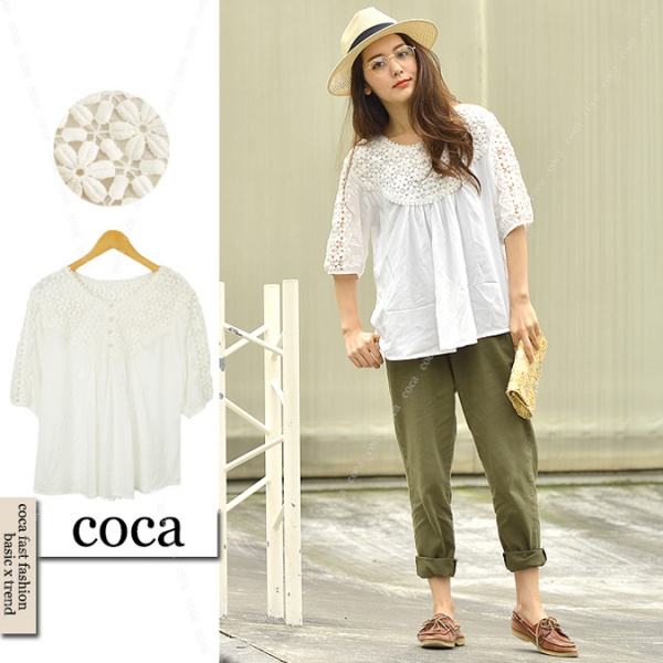 コットン素材なら、甘くなりがちなレースブラウスも、ナチュラルに着こなせますよ。どんなボトムスにも合わせやすいシンプルなところも魅力的ですね。(エディタ(Editor):dutyadmin)