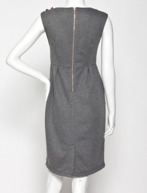 スッキリとしたフィット感のある細身のシルエットが特徴のタイトワンピース。左肩のボタンやバックのジップも上品なアクセントになっています。