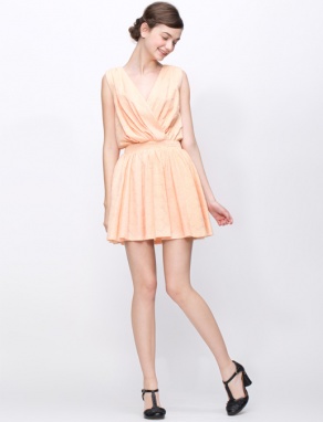 胸元がカシュクールデザインになっているノースリーブワンピ。刺繍レースがとってもフェミニンです。ハイウエストのボリュームスカートは脚長効果も。