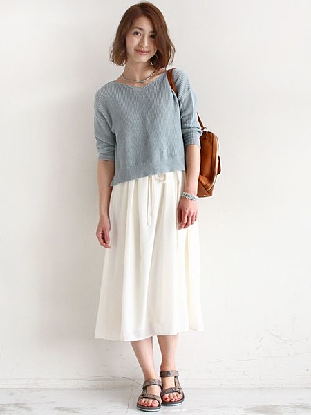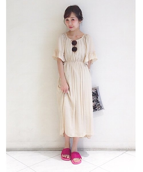 ホワイトの厚底サンダルはワンピースたスカートとの相性が良いです◎