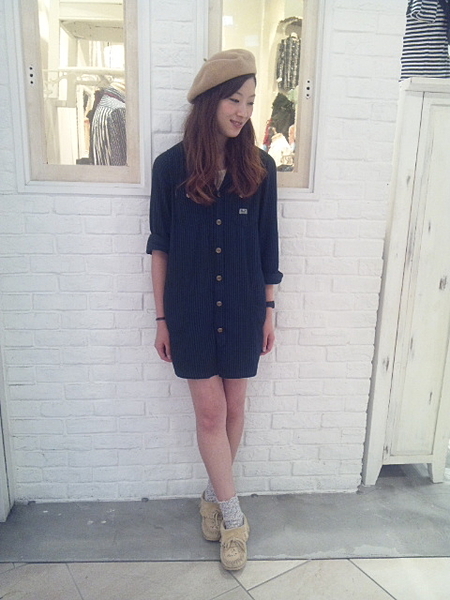 デニムシャツワンピース。