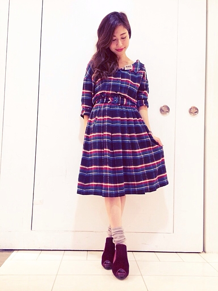 チェック柄ワンピース。