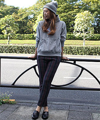 アメカジファッションにピッタリなパーカーですね。ロゴの色とボトムスを合わせて足元はスニーカーで可愛く着こなしたいアイテムです。