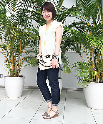 涼しげにホワイトのシューズは夏にぴったり。