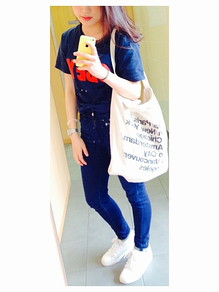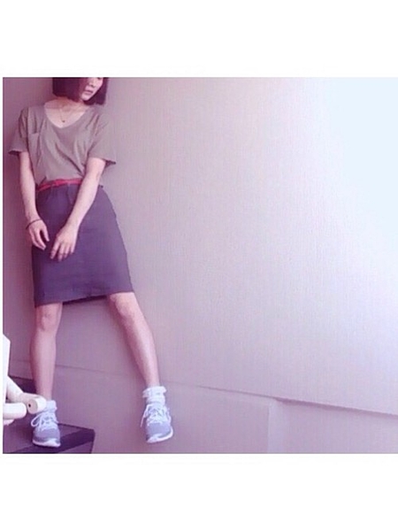 ホワイトのクラッチとスニーカーでカジュアルに♩