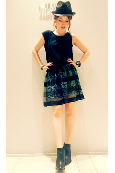 上下シンプルでも小物やアクセサリーで
