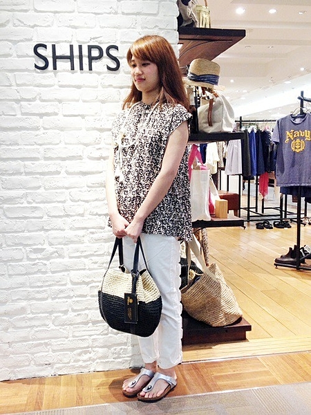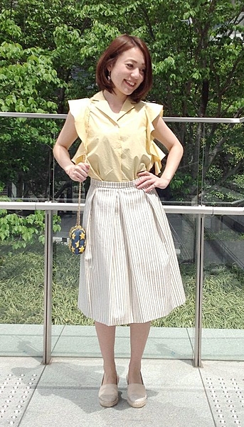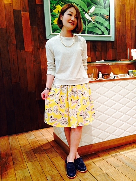 少しリゾート感のあるビタミンカラーのサンダルとの組み合わせがおススメ。