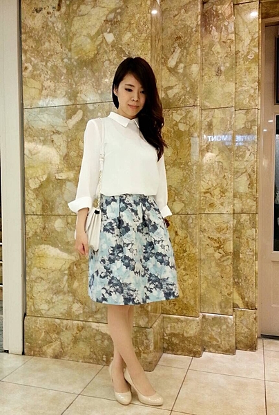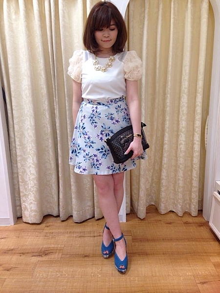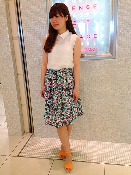 透け感のある素材で大胆な花柄は、おふぃすでもきっと注目の的。さりげなくパールのついた 細ベルトデザインがかわいいですね。