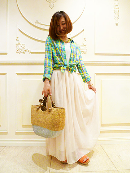 シンプルなフレア型のホワイトロングスカートはこの夏1枚は持っていたい!