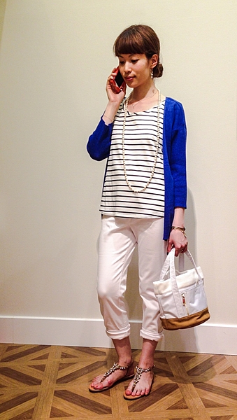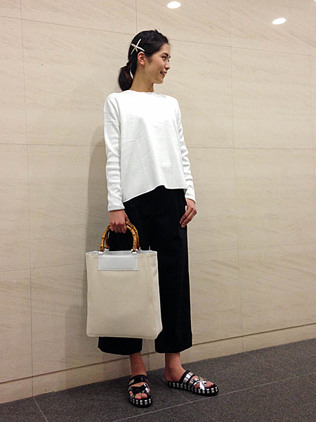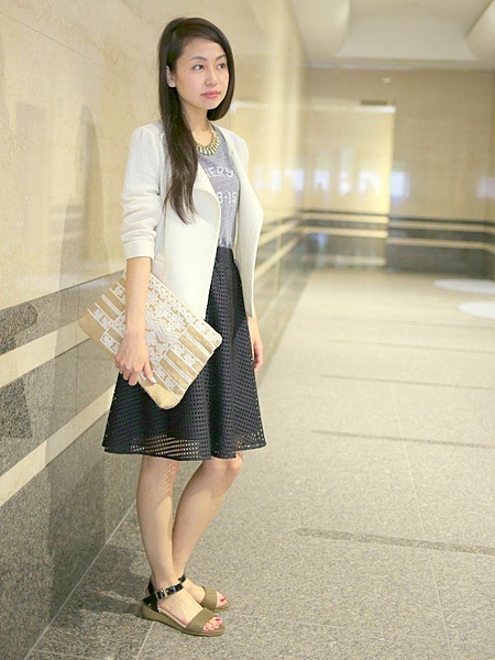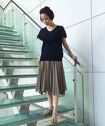 膝丈スカートに合わせればオフィススタイルに。