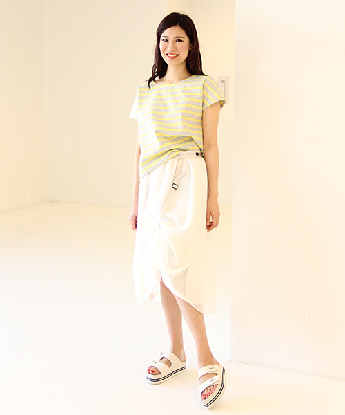 ボヘミアンなロングスカートに合わせればリゾートスタイルに。