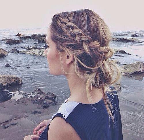 少しタイトに編み込みをして、サイドもタイトに三つ編みをしてあげるとすっきりした印象になって、それもまたおしゃれですね◎