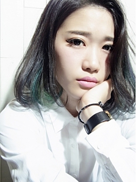 △ダークアッシュベース+ハイライト(エメラルドグリーン・ヴァイオレット・ブルー)