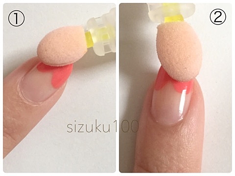 爪にアイシャドーチップでスタンプを押すようにハートの山?を意識して①、②とやります★