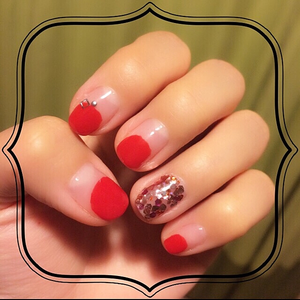 真っ赤なハートのネイルは、情熱的で素敵です。