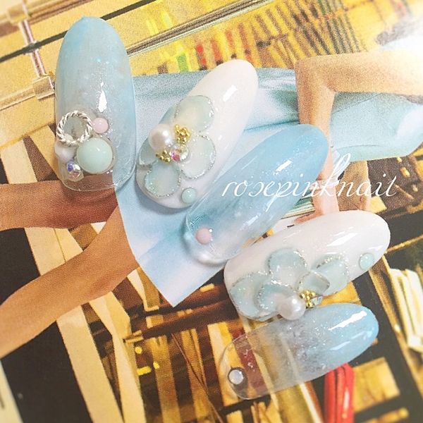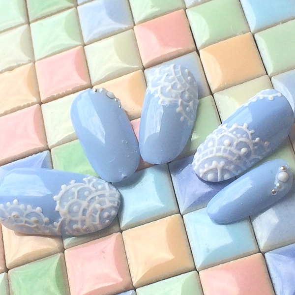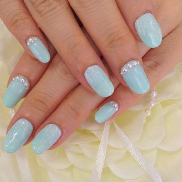 根元にクリアやブルーのストーンをのせてキラキラに☆