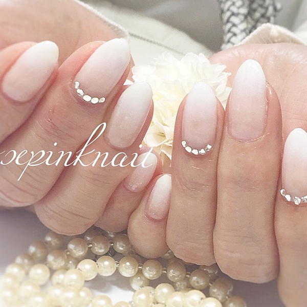 シンプルな白フレンチに、ストーンのりぼんをのせて可愛らしく♡
