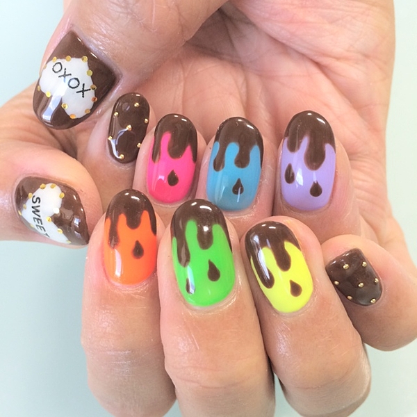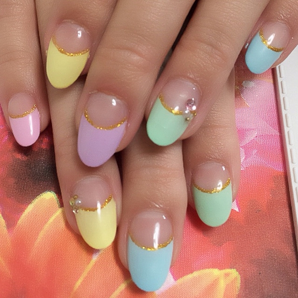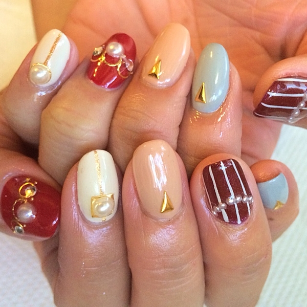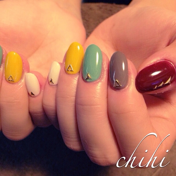 エレガントなカラフルネイルもスタッズで一気に印象が変わります。