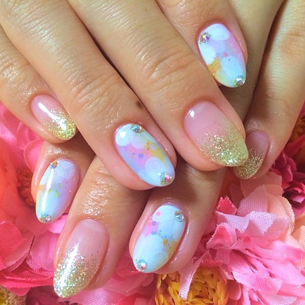 パステルカラーにフラワーネイルでエレガントさを演出。
