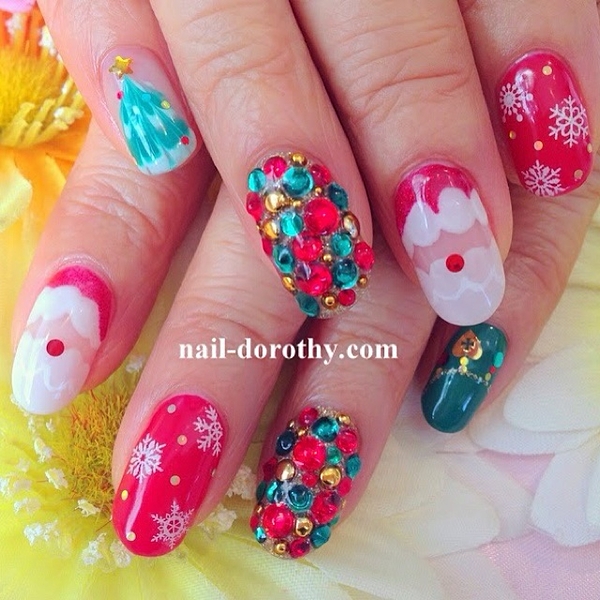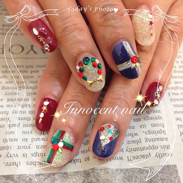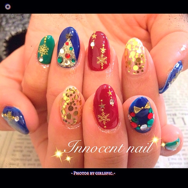 レッドとグリーンの2色はクリスマスネイルの超定番カラー。