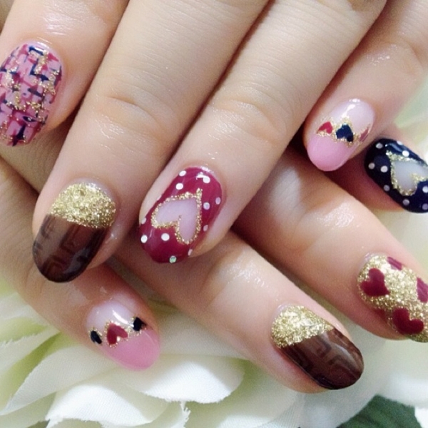 バレンタインネイルには、やっぱりハートモチーフは欠かせないですよね。
