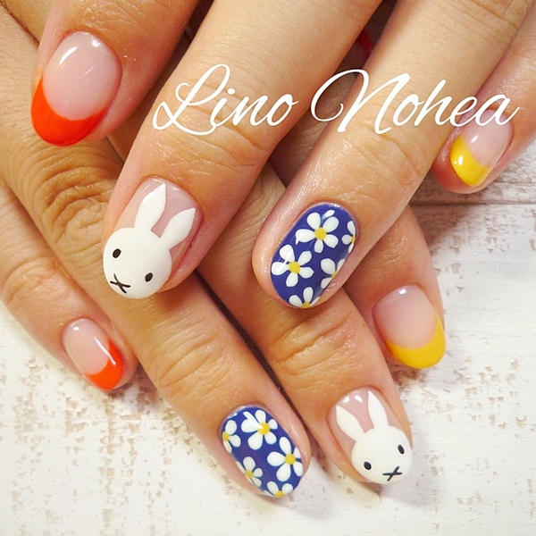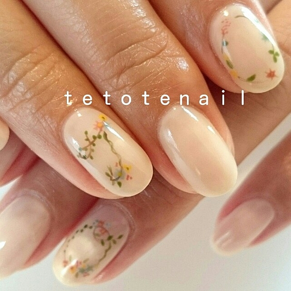 油絵やたらしこみネイルのような可愛いフラワー柄。
