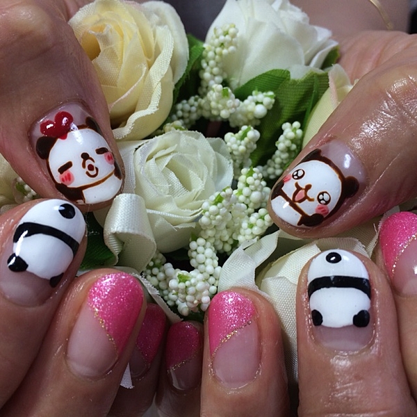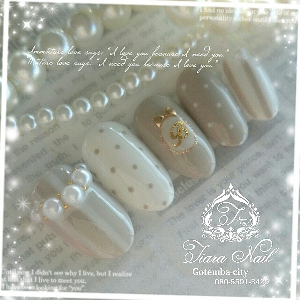 明後日バイトだしいーやって思ってたけど結局幼馴染にネイルしてもらった( ^ω^ )左手の薬指に「M」っていれた(笑)みんなイニシャル一緒だね。