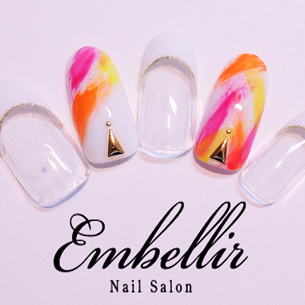 ホワイトベースにイエローやブルーのタイダイ柄フレンチ♡