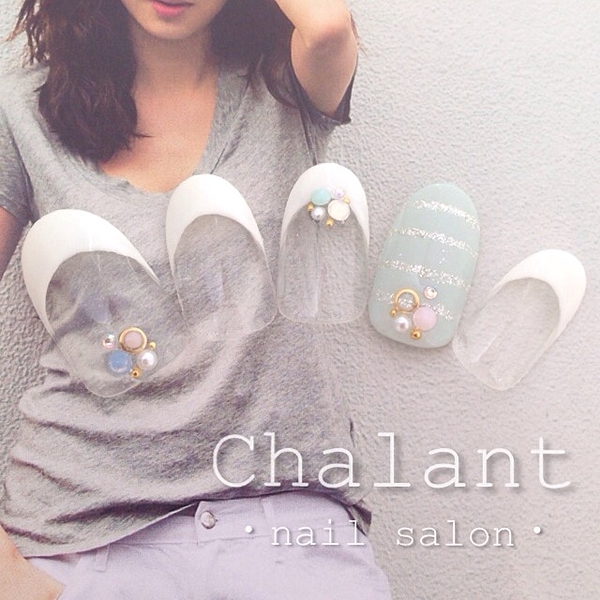 白フレンチネイルはきちんと感があって、オフィスでも褒められる上品ネイル♡でもさわやかなカラーで、ちょこっとデザインをプラスすれば夏にもぴったりのオシャレネイルに変身♪デザインやパーツをプラスしたり、他のカラーをプラスしたり・・白フレンチネイルを夏っぽくチェンジしましょう♡