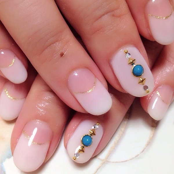 ピンクフレンチには、パールやストーンをのせてアクセントになってますね