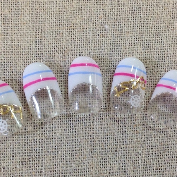 海にぴったりのカラーとデザインで、間違いないマリンネイルに♡