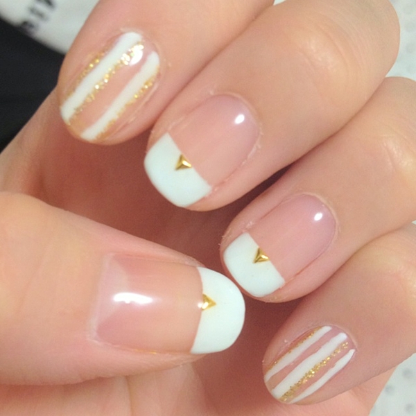 白フレンチにゴールドのラメラインを入れて、オフィスにもいけるデザイン♪