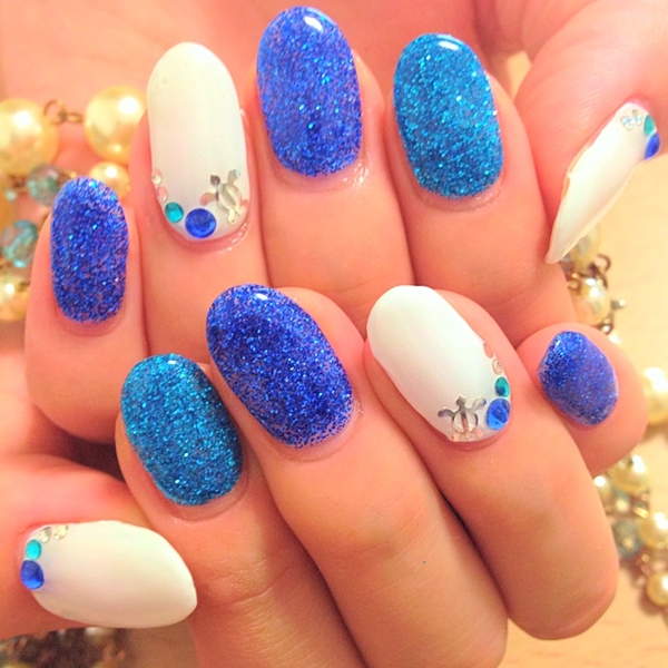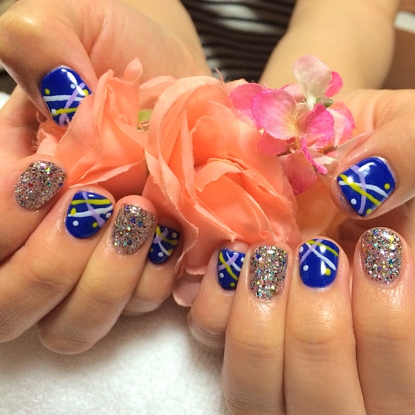 夏向けのネイル★いろんなシーンで ★ラメでキラキラボーダー ★UTEなにこちゃんマーク #かわいかったらRT http://t.co/Hh0gV7iagh