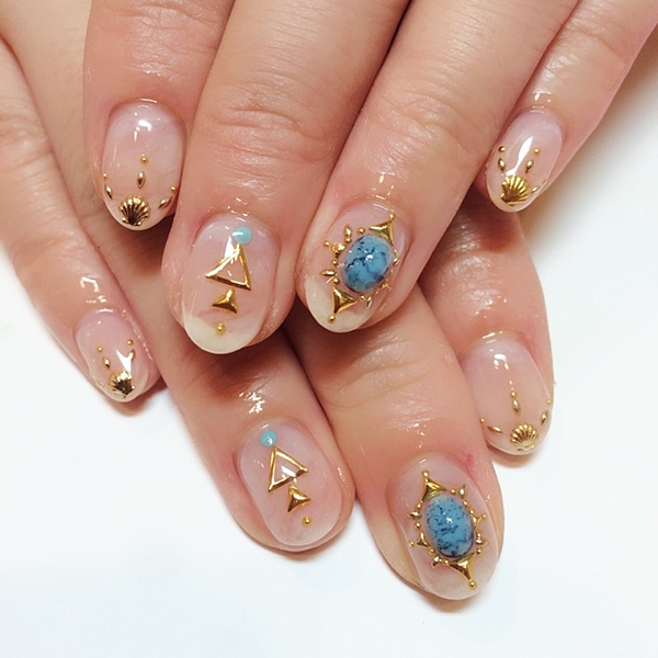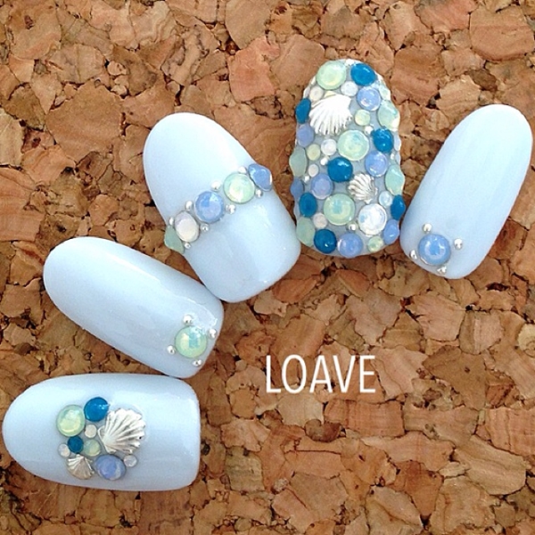 ストーンやシルバーシェルも流れるようにのせて、とってもきれいなデザインです☆