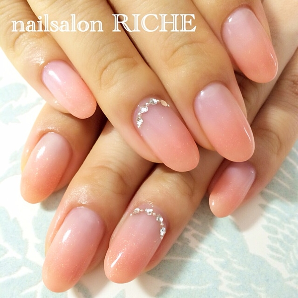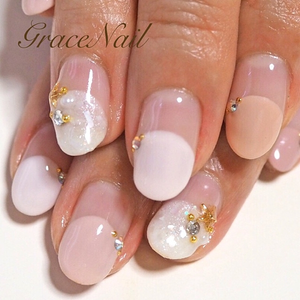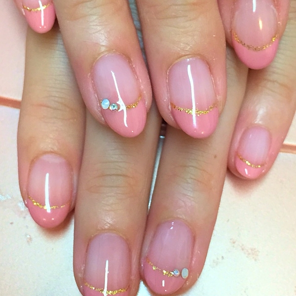 フレンチラインに1つずつのせたストーンが、シンプルなポイントに♪