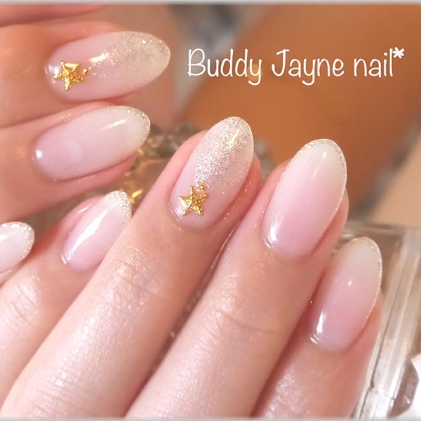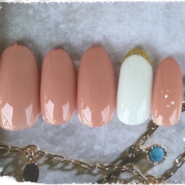 ヌーディーなベージュで1色ぬりにして、細かいラメでグラデーションに♪
