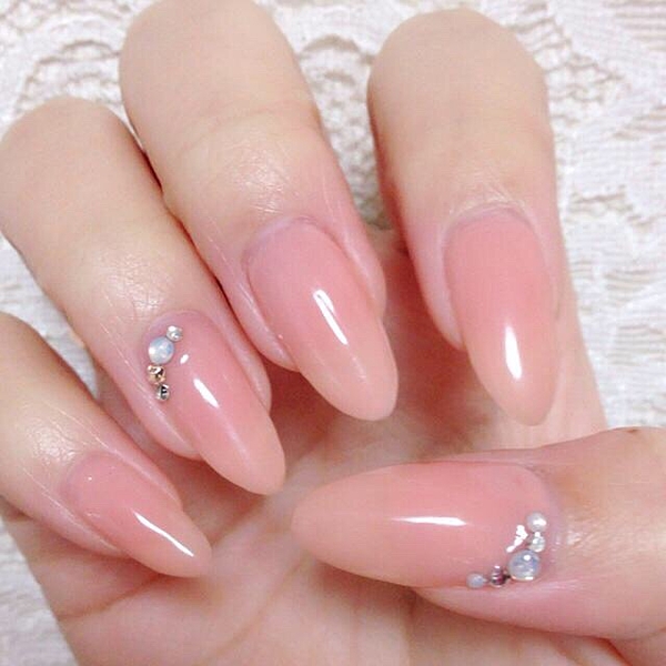 ミルキーピンクの1色塗りが、女性らしい指先に♡