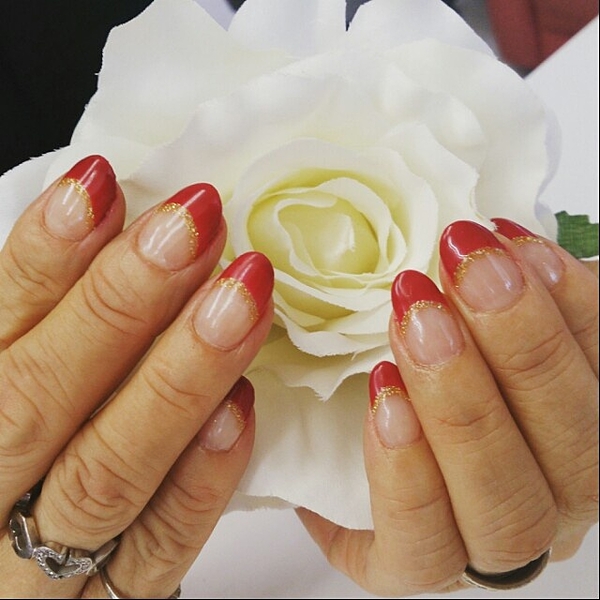 フレンチラインのゴールドラメが華やかさをプラス♪