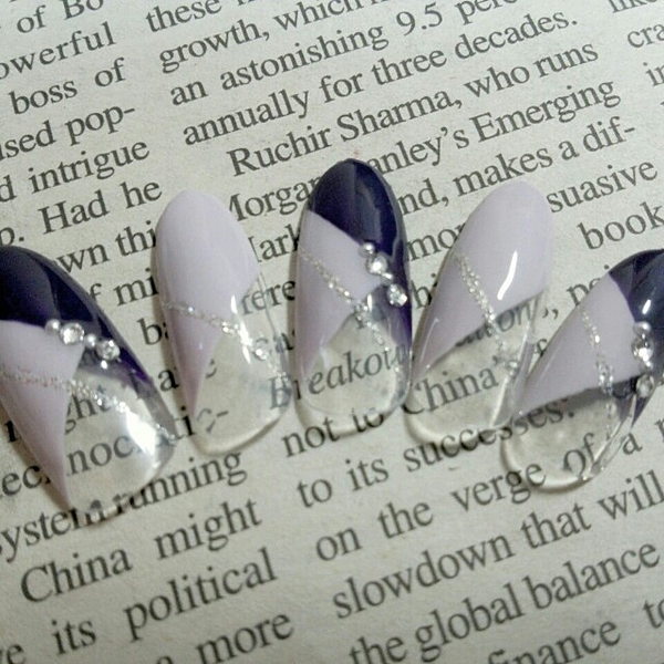 ブルーとピンクの組み合わせがオシャレな直線フレンチ