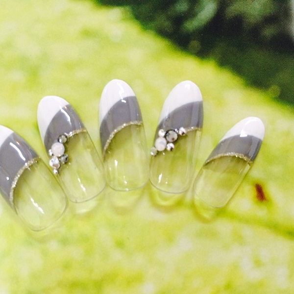 白フレンチに、グリーンのラインを入れるとこんなに新鮮!!