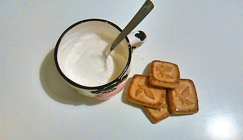 牛乳100ccにベビーパウダーを大さじ3杯混ぜて、ヨーグルトくらいの固さにします。