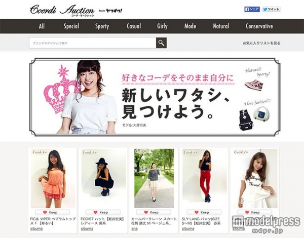 ◆日本最大級のコーディネートコンテストとは今回開始されたのは、Yahoo!JAPANが運営する日本最大級のインターネットオークションサイト「ヤフオク!」が、人気女性向けニュースメディア「モデルプレス」及び出品代行サービス「Quick Do」と連携したオークション特設サイト「Coordi Auction」にて開催されるコーディネートコンテスト。